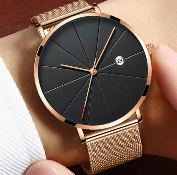 Rose gold is a hybrid material made of gold, copper, and other metals. This gold watch usually comes in a pink or rose gold color, unlike other gold watches. Rose gold watches are for those who want to stand out as they have a unique look and feel. Also, rose gold watches are often less expensive compared to other gold watches.